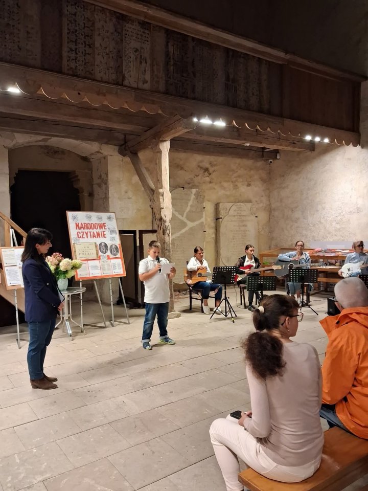 W sobotę, 6 września uczniowie naszej szkoły wzięli udział w ogólnopolskiej akcji Narodowe Czytanie 2025. W kościele św.św. Jana i Katarzyny spotkali się czytelnicy poezji Jana Kochanowskiego. Nasi uczniowie odczytali fraszki, pieśni i treny Jana z Czarnolasu. Piękne wnętrze kościoła, dźwięki gitarowej muzyki, mądre i wciąż aktualne słowa poety stworzyły niepowtarzalny nastrój i skłoniły do refleksji uczestników tego literackiego święta.